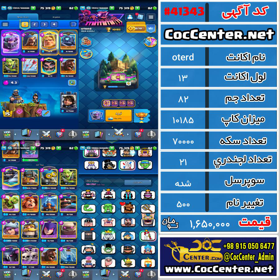 برای اطلاعات دقیق تر و بهره بردن از امکانات و مزایای خرید اکانت کلش رویال با ارزان ترین نرخ از وب سایت کوک سنتر دیدن کنید.